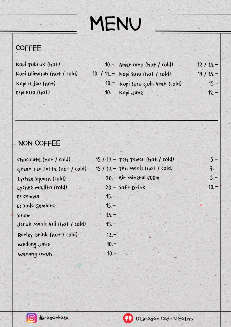 Welcome to D'Limasan Cafe & Eatery, a charming hidden gem nestled in the heart of Tlekung, Kota Batu. This delightful café offers a perfect blend of traditional Indonesian cuisine and a vintage ambiance, making it an ideal spot for family gatherings, casual meet-ups, or simply unwinding after a day of exploration in the scenic city of Batu.